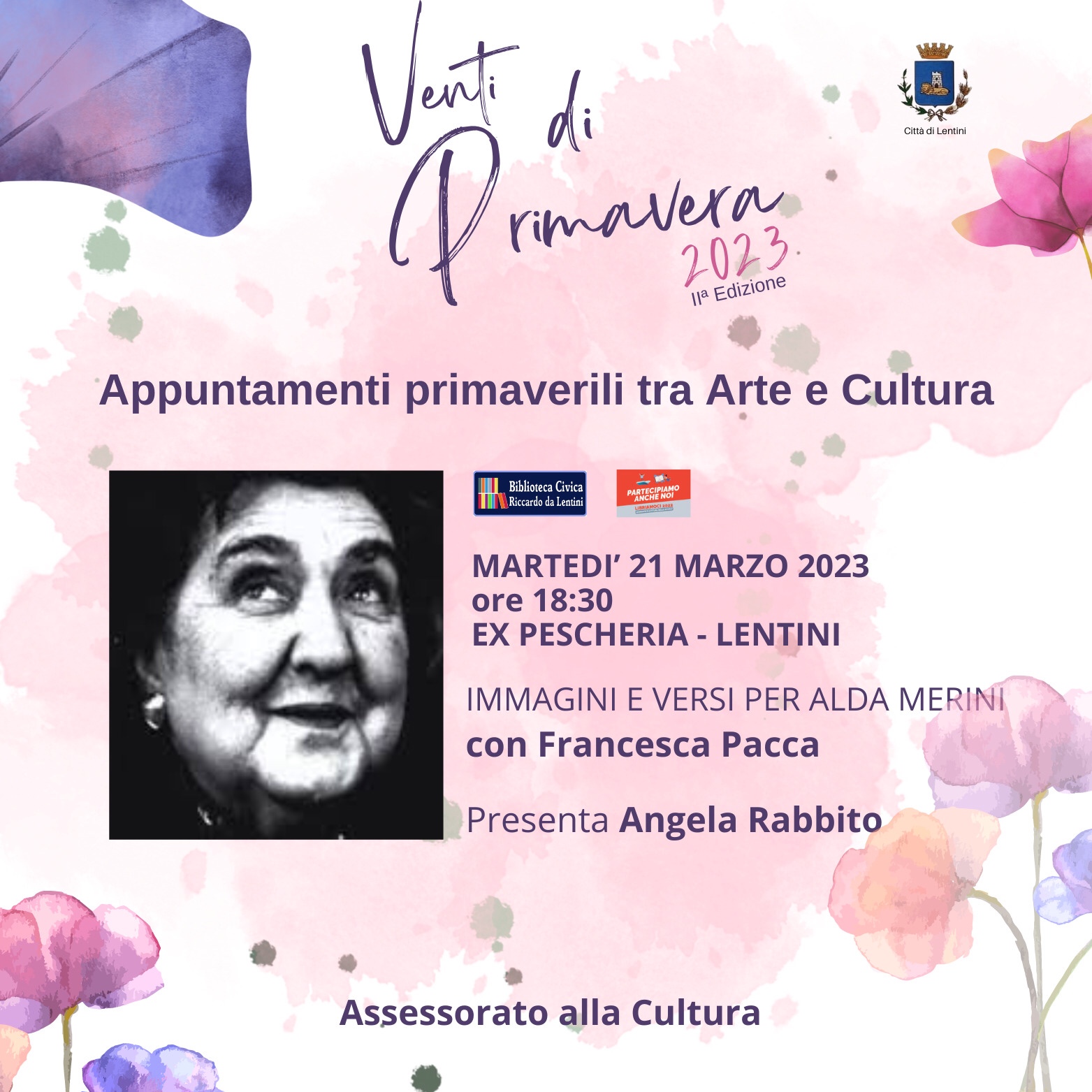 Ieri sera è stata la Ex Pescheria ad accogliere una originale composizione di musica, immagini e versi, partorita dalla irresistibile vena poetica di Pippo Cardello, presentata da Angela Rabbito, una performance magistrale di Francesca Pacca degli Amici di Casa Costa, che abbiamo imparato a conoscere negli scorsi Venti di Primavera.