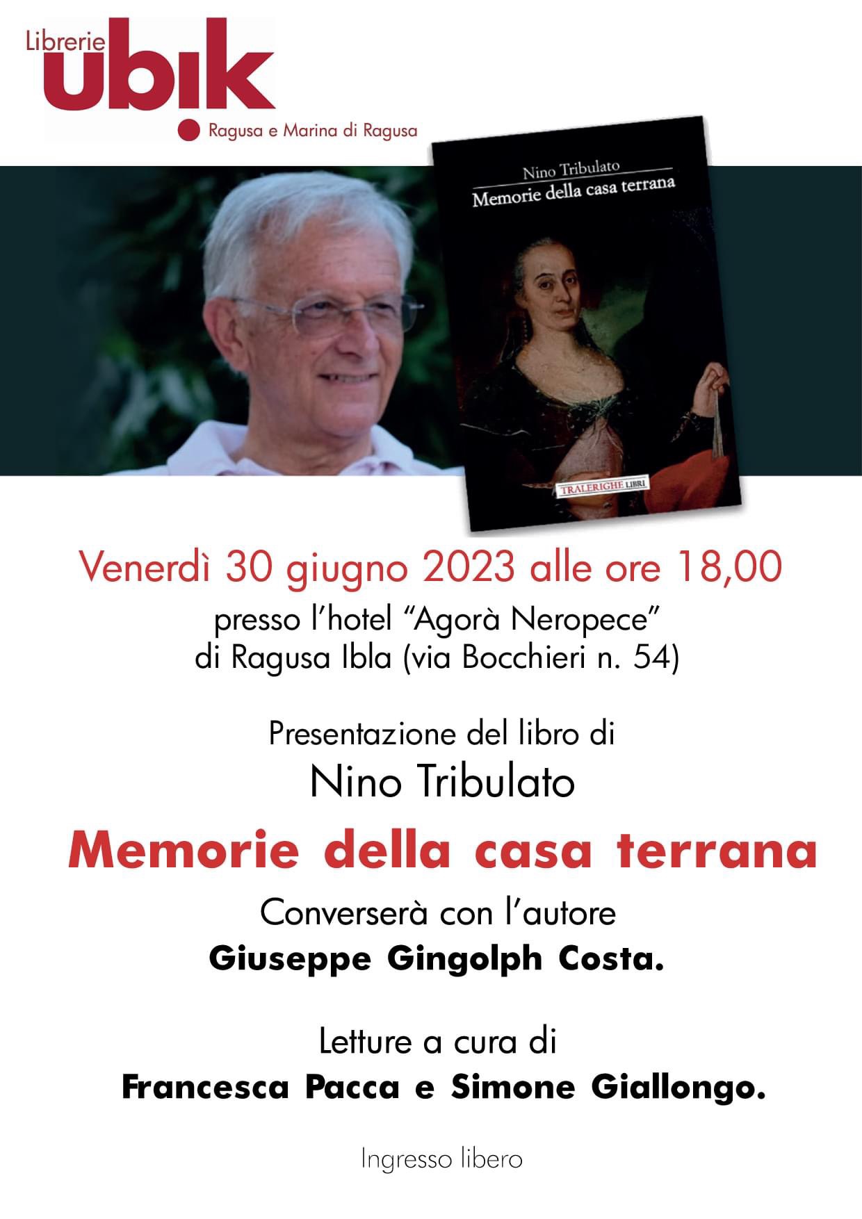 Nonostante il caldo africano – anche a Ragusa, nonostante ZTL e difficoltà di parcheggio, un nutrito gruppo di amanti dei libri e della cultura ci ha raggiunto e si è rifugiato dentro l’oasi di frescura dell’Agorà Neropece, si è accomodato sulle sedie messe a disposizione – qualcuno è rimasto in piedi – e ha partecipato all’incontro con Nino Tribulato, autore del sorprendente romanzo d’esordio: Memorie della casa terrana per Tralerighe Libri.