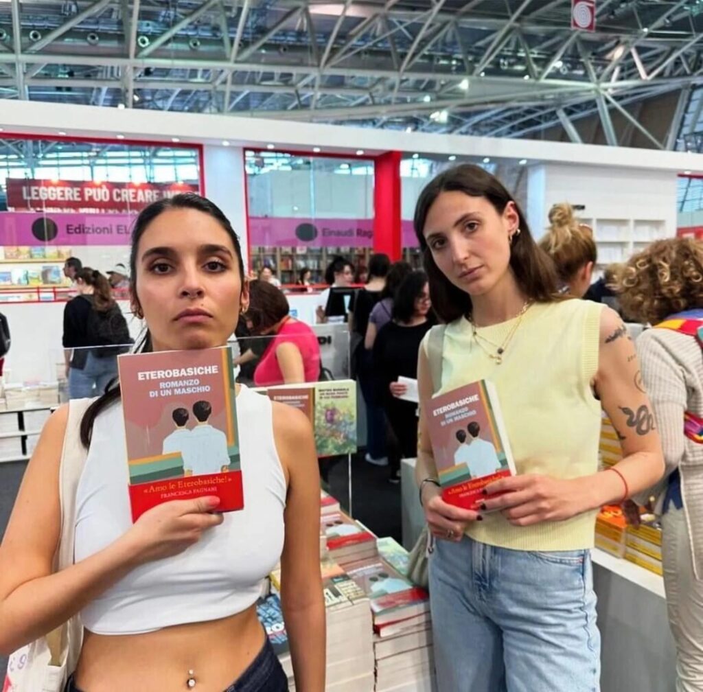 In realtà il romanzo lo ha scritto Maria Chiara, ma circola e viene presentato e accompagnato dalla ditta al completo delle due dissacranti eterobasiche.